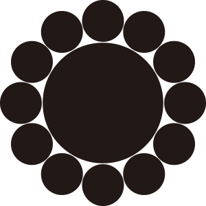 十三曜紋は、大きな星の周囲に円を描くように小さな星を12個並べて描く。