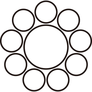 陰十曜紋は、『十曜』を輪郭線のみで描く。