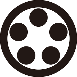 丸に離れ五つ星紋は、五角形の『五つ星』を少し小さく描いて離して配置し丸で囲う。