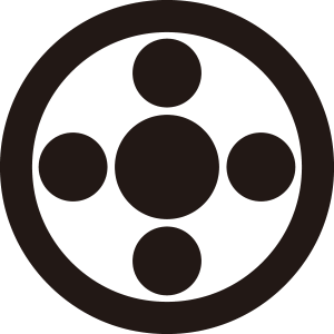 丸に五つ星紋は、真ん中に少し大きな星と上下左右に小さな星を配した十字形の『五つ星』を丸で囲う。
