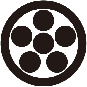 丸に六曜紋は、『六つ星』を描いて、その周りを通常の太さの丸で囲って描く。旗本佐橋氏の家紋の一つ。