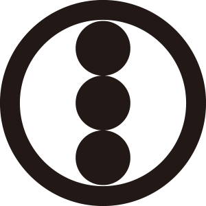 丸に竪三つ星紋は、『並び三つ星』を縦向きに描いて、その周りを通常の太さの丸で囲う。