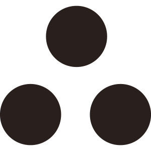 松浦星紋は、一般的な『三つ星』より少し星と星の距離を開けて配置する。肥前平戸藩松浦氏の家紋。
