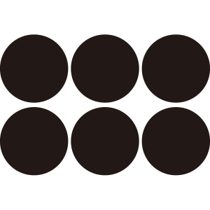 横並び六つ星紋は、同じ大きさの6つの星を横に2列並べて長方形に配置して描く。