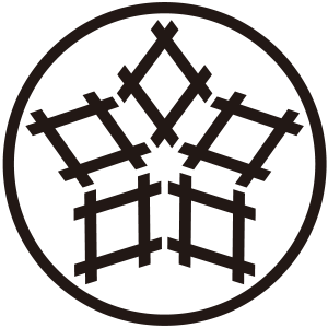 | 井筒・井桁紋とは、井戸をモチーフとした家紋。井戸の地上部分を囲むように囲まれた井の字型の木組を「井桁」、また円形のものを「井筒」というが、紋章では正方形のものを井筒、菱形のものを井桁と呼ぶ。 井伊氏の家紋として有名だが、同じように名字の一部に「井」の字を含む家も家紋としての採用が多い。 |