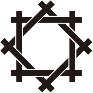 | 井筒・井桁紋とは、井戸をモチーフとした家紋。井戸の地上部分を囲むように囲まれた井の字型の木組を「井桁」、また円形のものを「井筒」というが、紋章では正方形のものを井筒、菱形のものを井桁と呼ぶ。 井伊氏の家紋として有名だが、同じように名字の一部に「井」の字を含む家も家紋としての採用が多い。 |