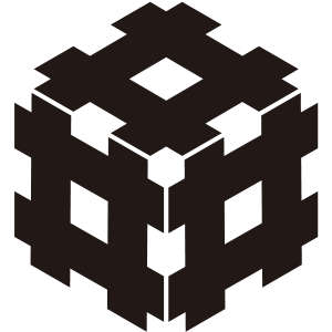 三つ井桁紋は、3つの『井桁』を寄せて、四角い箱を斜めからみたような形に描く。