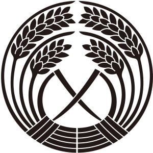 抱き稲紋は、2つの穂を持つ稲の束を左右から丸い形に抱き合わせ、内側の葉を1枚ずつ折って斜めに重なるように描く。旗本鈴木氏、旗本花房氏の家紋の一つ。