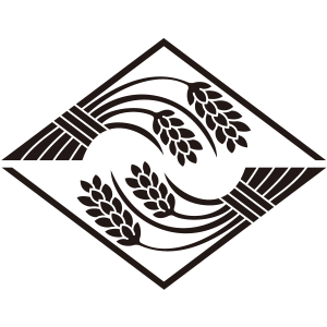 右対い稲菱紋は、二つの穂を持つ2束の稲を右まわりに追いかけるように並べて菱形に描く。