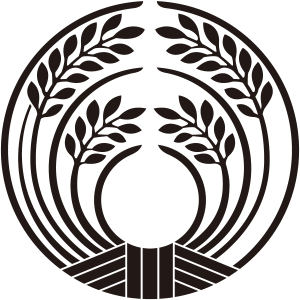 包み抱き稲紋は、2つの穂をつけた2つの稲を結わえて、左右から抱くように丸い形に描く。遠江横須賀藩西尾氏の替紋のひとつ。