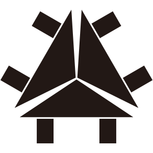 三つ頭合せ庵紋は、3つの『庵紋』を頭合わせに寄せて描く。