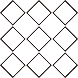 | 石畳紋は市松文様が家紋の素材となったもの。石紋・霰紋(あられ)ともいわれる。窠(か)と霰文様の組み合わせは、平安時代の男子の正装である表袴(うえのはかま)の代表的な文様で江戸時代まで用いられた。 ちなみに、4つの角は必ず直角で、それにより菱紋と区別される。 |