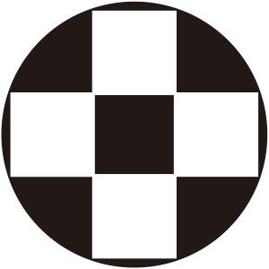 | 石畳紋は市松文様が家紋の素材となったもの。石紋・霰紋(あられ)ともいわれる。窠(か)と霰文様の組み合わせは、平安時代の男子の正装である表袴(うえのはかま)の代表的な文様で江戸時代まで用いられた。 ちなみに、4つの角は必ず直角で、それにより菱紋と区別される。 |