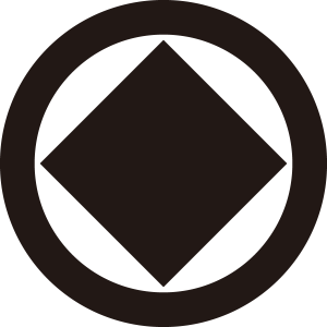 丸に隅立て一つ石紋は、正方形の石を角を立てて1つ描き、その周りを通常の太さの円で囲う。