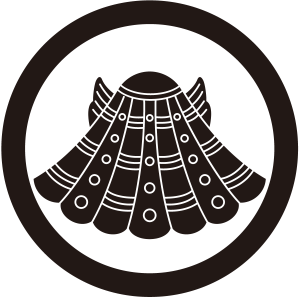 丸に板屋貝紋は、『板屋貝』を描いて、その周りに通常の太さの丸で囲う。