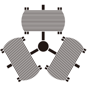三つ枠糸巻紋は、凧揚げなどに用いる手持ちの糸巻きを、3本尻合わせに集めて車状に描く。