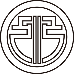 陰丸に平岩弓文字紋は、『丸に平岩弓文字』を輪郭のみで描く。