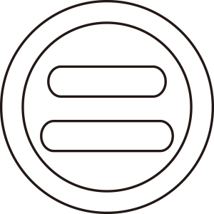 陰丸に二文字紋は、丸文字のような『二文字』を中心に描いた『丸に二文字』を輪郭線のみで描く。
