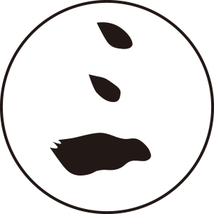 毛輪に三文字紋は、筆勢の「三」の文字を描いて、その周りを毛のように細い丸で囲う。