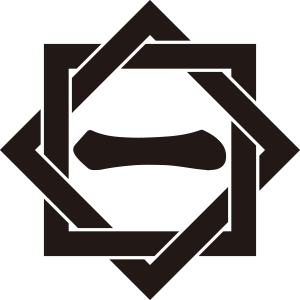 組み合い角に一文字紋は、筆で書いたような『一文字』を描いて、その周りを『組み合い角』で囲う。