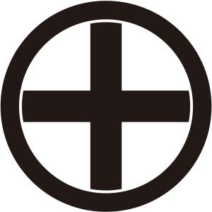 丸の内に十字は、『十字』を描いて、その周りに通常の太さの丸を十字に接しないようにで囲う。