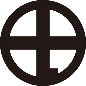 丸に鍵十字紋は、島津氏の『丸に十文字』を変形し、十字の下の部分を鍵状に曲げて描く。薩摩の島津氏庶流新納氏の家紋。