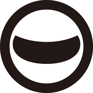 丸に反り一文字紋は、両端が上に反った『一文字』を描いて、その周りを通常の太さの丸で囲う。