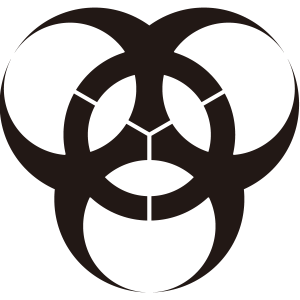 三つ大文字紋は、組み合わせると丸くなるように変形した3つの『大文字』を頭合わせに寄せて描く。