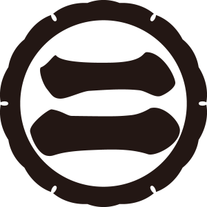 外雪輪に二文字(2)紋は、筆で書いたような『二文字』を描いて、その周りを少し細い『外雪輪』で囲う。