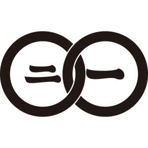 輪違いに一二文字紋は、『輪違い』を描いて、それぞれの輪の中央に筆で書いたような『一文字』と『二文字』を描く。代々武田家に仕えた旗本石原氏の家紋。石原政成の武功に対して、武田信玄より「なんじ勇士のうち一、二をあらそうべし、よろしく一二の文字を持って旗の紋となすべし」との命により、のちに家紋としたと伝わる。