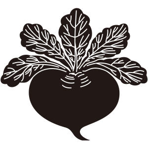 一つ蕪紋は、5枚の葉を付けた1本の蕪を紋章化した家紋。旗本塚原氏の家紋で「天王寺蕪」と呼ばれている。