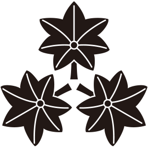 尻合せ三つ楓紋は、3枚の楓の葉を、尻を合せて寄せ描く。