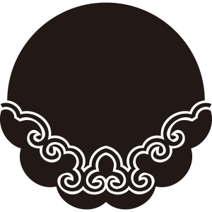 御鏡紋は、御神体として見立てる正円の鏡を雲形台の上に据えた形に描く。
