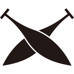 違い櫂紋は、2本の櫂を斜めに互い違いに重ねてXの形に描く。