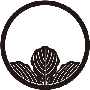 細輪に覗き梶の葉紋は、細い丸(細輪)の中に梶の葉を下の方からわずかに頭を出すように描く。