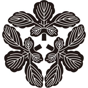 尻合せ三つ梶の葉紋は、横に広げた3枚の梶の葉を尻合わせに寄せて描く。