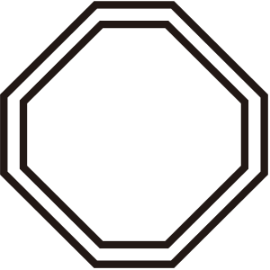 | 角紋は通常では単独で用いられることはなく外郭として用いられる。単独で描かれた角紋は中に描かれた文様を省略したもの。角紋は4〜8角まであり、「反り」「むくみ」「隅切り」「隅入り」「違い」「組み合い」など様々なバリエーションがある。 |