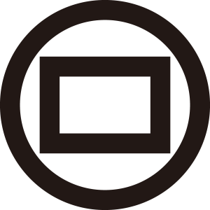 丸に垂れ角紋とは、『垂れ角』を描いて、その周りを通常の太さの丸で囲う。
