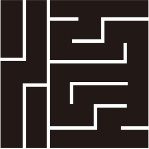 | 角字紋は文字紋の一種で、正方形の中に曲線を用いずに描かれる。文字紋は文字を紋章化したもので、家々で独自に設定され用いられることも多く、バラエティに飛んでいる。 |