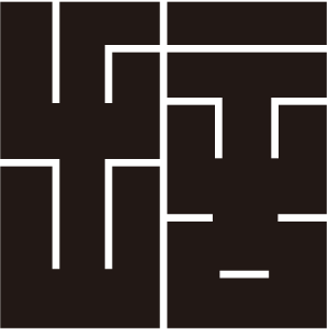 | 角字紋は文字紋の一種で、正方形の中に曲線を用いずに描かれる。文字紋は文字を紋章化したもので、家々で独自に設定され用いられることも多く、バラエティに飛んでいる。 |