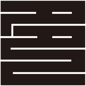 | 角字紋は文字紋の一種で、正方形の中に曲線を用いずに描かれる。文字紋は文字を紋章化したもので、家々で独自に設定され用いられることも多く、バラエティに飛んでいる。 |