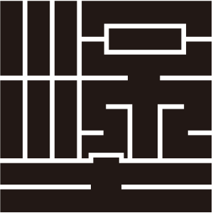 | 角字紋は文字紋の一種で、正方形の中に曲線を用いずに描かれる。文字紋は文字を紋章化したもので、家々で独自に設定され用いられることも多く、バラエティに飛んでいる。 |