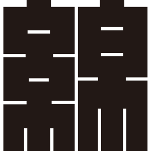 | 角字紋は文字紋の一種で、正方形の中に曲線を用いずに描かれる。文字紋は文字を紋章化したもので、家々で独自に設定され用いられることも多く、バラエティに飛んでいる。 |