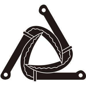 三つ鎌紋は、3本の鎌を刃を組み合わせるように寄せて三角の形に描く。