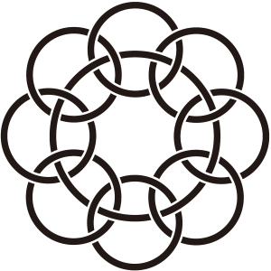 | 釜敷紋とは、火から卸した釜の下にした敷いた道具である釜敷きをモチーフとした家紋。紋としては『金輪紋』に似ており見分けにくい。形状の種類も多く、桔梗、梅鉢、桜、雪などを模した紋もある。江戸中期以降に見られる比較的新しい文様で、家紋としては用いる家は少ない。 |