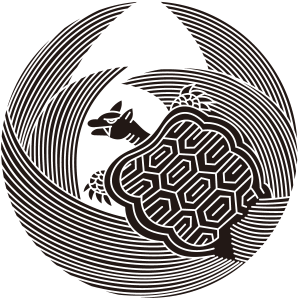 | 亀紋とは、蓬莱山にすむという霊亀を図案化した家紋。亀は古くから長寿を象徴する動物で、家紋として描かれる亀には長い毛と耳が生えているものが多く、紋章では蓑亀(ミノガメ)と呼んでいる。文様としても古くから用いられているが、家紋となったのは比較的に新しく、江戸時代以降が多い。長寿など瑞祥的な意義で用いられた。 |