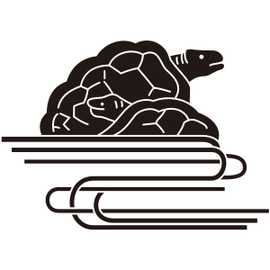 | 亀紋とは、蓬莱山にすむという霊亀を図案化した家紋。亀は古くから長寿を象徴する動物で、家紋として描かれる亀には長い毛と耳が生えているものが多く、紋章では蓑亀(ミノガメ)と呼んでいる。文様としても古くから用いられているが、家紋となったのは比較的に新しく、江戸時代以降が多い。長寿など瑞祥的な意義で用いられた。 |