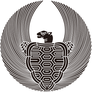 | 亀紋とは、蓬莱山にすむという霊亀を図案化した家紋。亀は古くから長寿を象徴する動物で、家紋として描かれる亀には長い毛と耳が生えているものが多く、紋章では蓑亀(ミノガメ)と呼んでいる。文様としても古くから用いられているが、家紋となったのは比較的に新しく、江戸時代以降が多い。長寿など瑞祥的な意義で用いられた。 |