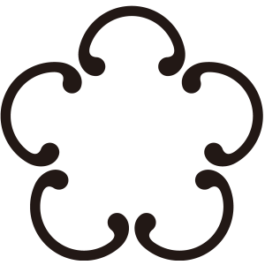 梅形五つ鐶紋は、5つの『鐶』を尻合わせに寄せて『梅紋』の形に似せて描く。