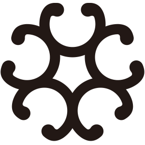六条鐶桜紋は、5つの『鐶』を頭を合わせて寄せて、全てを繋げて『桜』の形に描く。